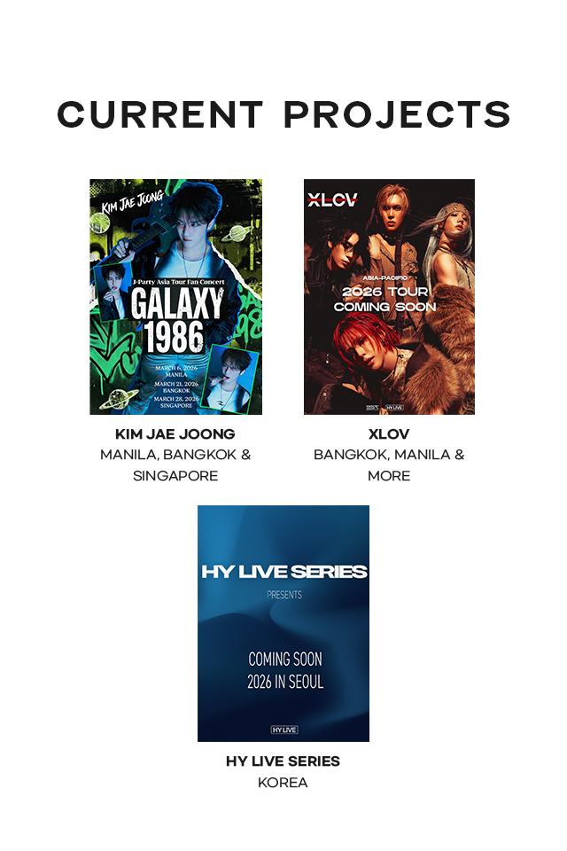 - HY LIVEはアーティストと世界各地のプロモーターをお繋げし、長年かけて築き上げたノウハウをもとにアーティスト様のケアから現場運営まで責任持って担当します。